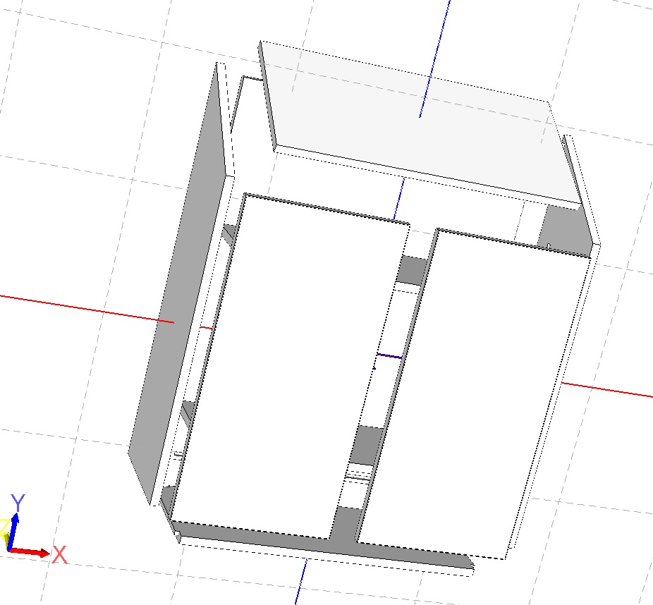 Just closing the loop. Made with stretcher. Calculated length using geometry of triangle, added for mitering the edges to vertical. Doors size correctly, etc.