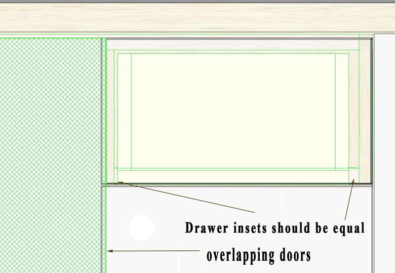 All the gaps should look right whatever the are set to until you go back to main screen. You will see the fronts overlap on the partition. This only is the case if you are using conastoga fronts with a drawer box. If you use slab fronts with a box, no problem.