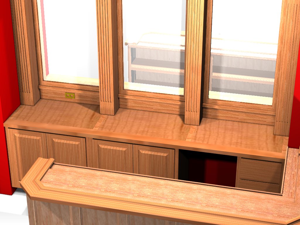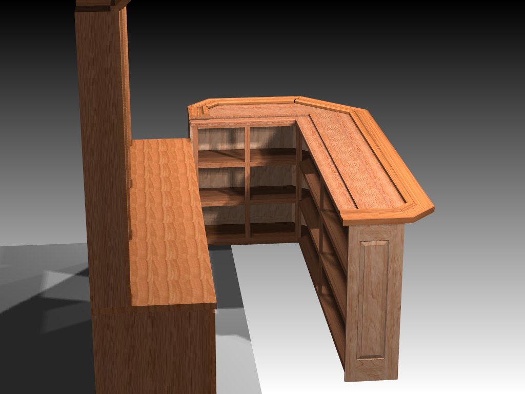 I made the bar cabinets in the program but did not know how to make the bar rail at that time.I just put the bar top on today.The people