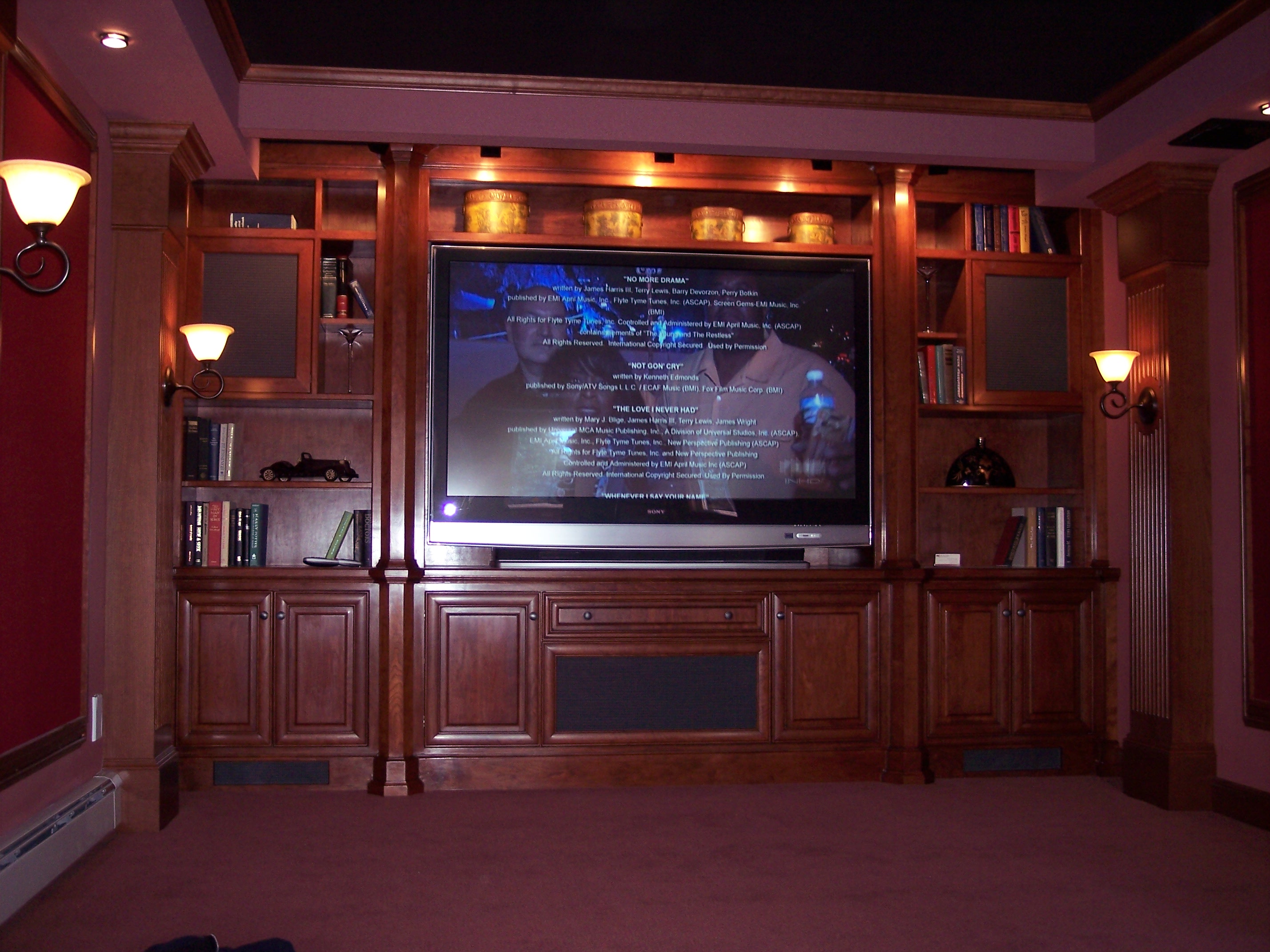 Here is a cabinet I made for a local a/v dealer for their theater room in their new location. They paid materials, we donated labor. A good deal all around.