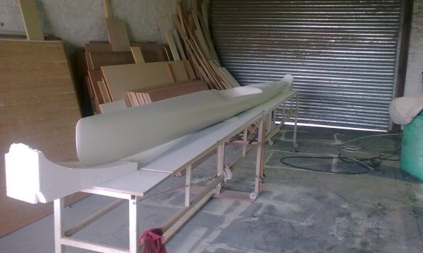 Things we get up to when board cutting gets boring. The first we try was a Malibu that the youngsters here use for life saving training. The second one a plug made out of MDF that they going to make a mold of to make surfs-ski's. All cut on a C40 machine. The surf-ski is made out of 6 parts, that we machine from 2 to 3 sides. Malibu gets only machine from top and then turn it around and then machine the bottom.