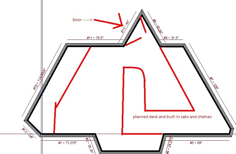 Hi there, could anyone help me with some ideas for my built in units, I wanted to use a coner cabinet but I can't get it to 75 degrees. i have included a diagram of what I hope to do. Any ideas would be greatly appreciated ! ! !