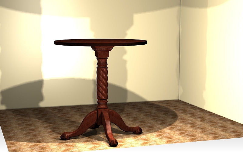 I forgot to mention last night that if you want more of the detail under the table top, don't place any lights above it to cast shadows. This is just one light under the top and to the right.