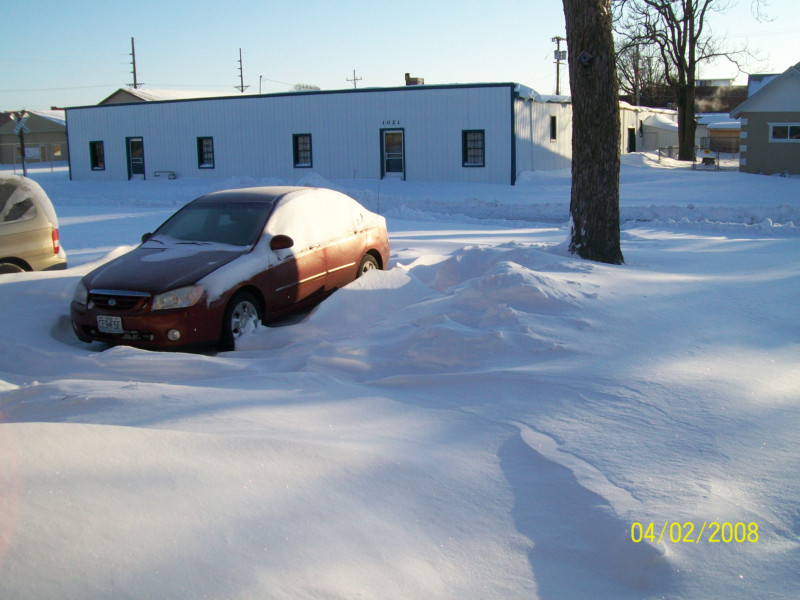 Just thought I would share a couple photos of snow. This is the deepest I have seen it in Joplin. The drift next to the house is as tall as the railing which is 3' and 1' above the ground. The pile in the front is 4' deep. Notice the snow next to the vehicles. I shoveled yesterday and now you can't tell where. I get to do it again. A tractor plowed the road this morning so after I shovel we can get out. State of Emergency in Missouri and in Joplin. First time in Joplin history. Nothing to do but sled. WWWhhhheeee :D