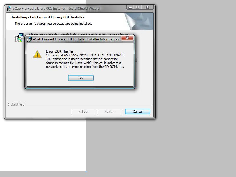 I joined, downloaded the program a few days ago...I also downloaded the cabinet libraries. When I go to install the cabib library files I get Error 1334...I've attached a picture of the error. I reinstalled it even, clicked repair. Does anyone know what to do? I sure hope so haha