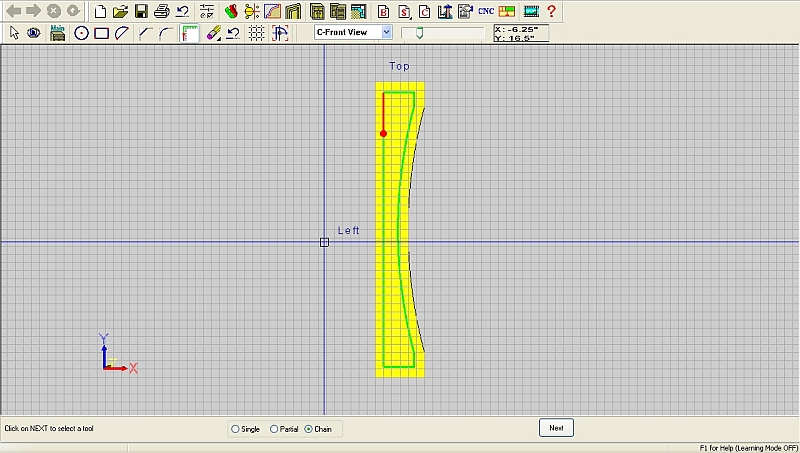 I had my first chance to play with the Profile modeler yesterday and ran into a problem. Fluting single line tool paths were no problem, everything worked as expected but when I tried to flute this "Chain" around an arch,