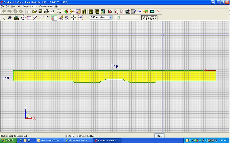 Hmmmmm, I cannot seem to get this tool to do a partial or a full chain. I assume you are using the cabinet named {Base} that is made out of a cabinet back? Where on the part do you start your chain or partial chain?