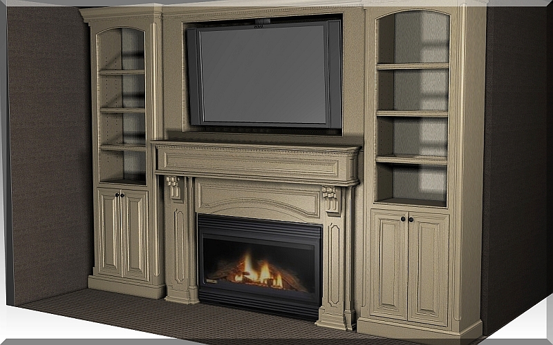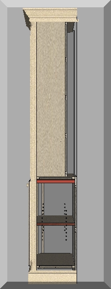 Wayne, I have a great deal of time with this because this is the fifth mantel design in the seventh revision of the total design which includes a couple of other cabinets. I have drawn these with flat fluted columns, radius fluted columns, panel radius columns, half circle top rails, straight top rails, eyebrow top rails, display cabinets recessed at three different depth, display cabinet bumped out, cabinets at 84" height, cabinets to the ceiling, (you get the picture