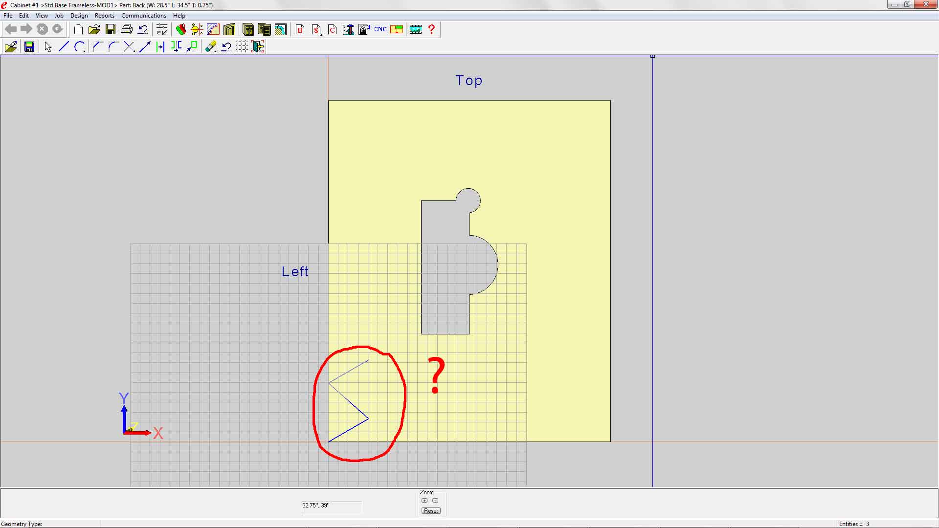 At first I tried a simple horizontal ellipse shape, and it loaded in the Contour Mode window skewed upwards. I figured it was because curved showed up as a series of small straight lines and it confused eCabinets so I tried a 5-pointed star shape. Since the star was made out of straight lines. I figured that may solve the problem.