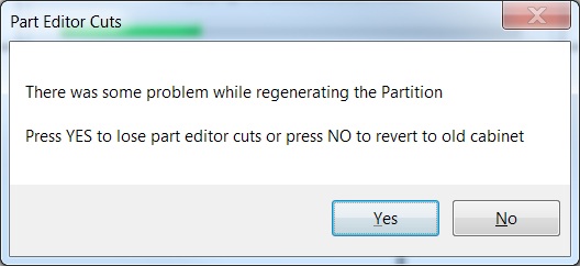 Problem regenerating PE cuts for a partition