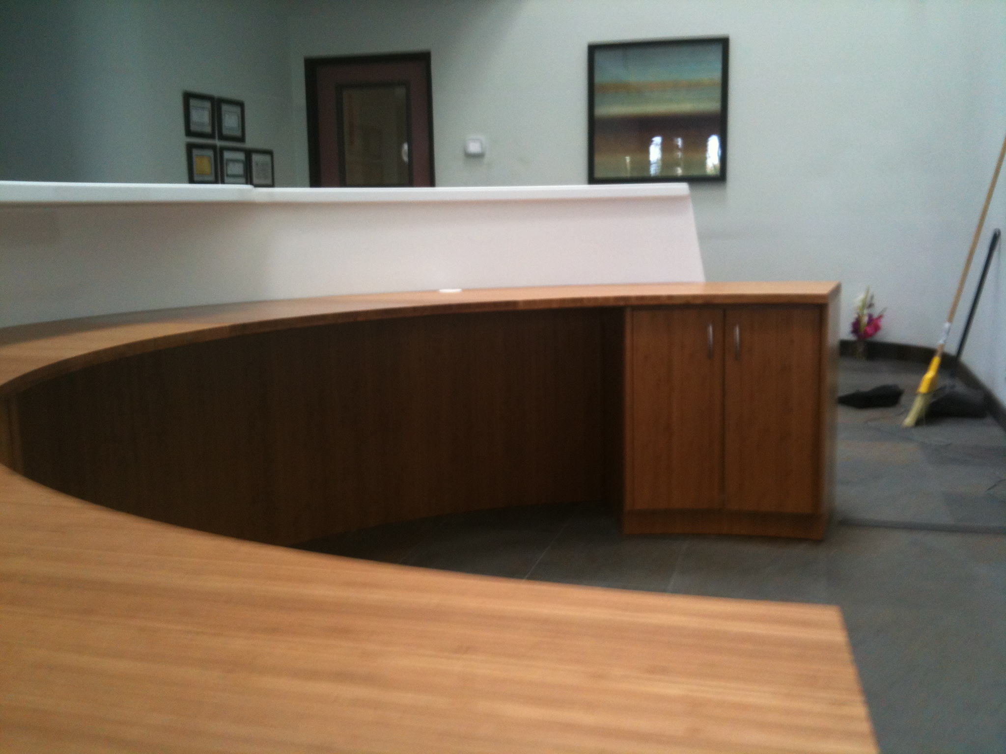 Just finished this Bamboo reception desk! All parts were cut on the Thermwood. Curves were made from stacked archs, not bent. Lots of time! Finally done!