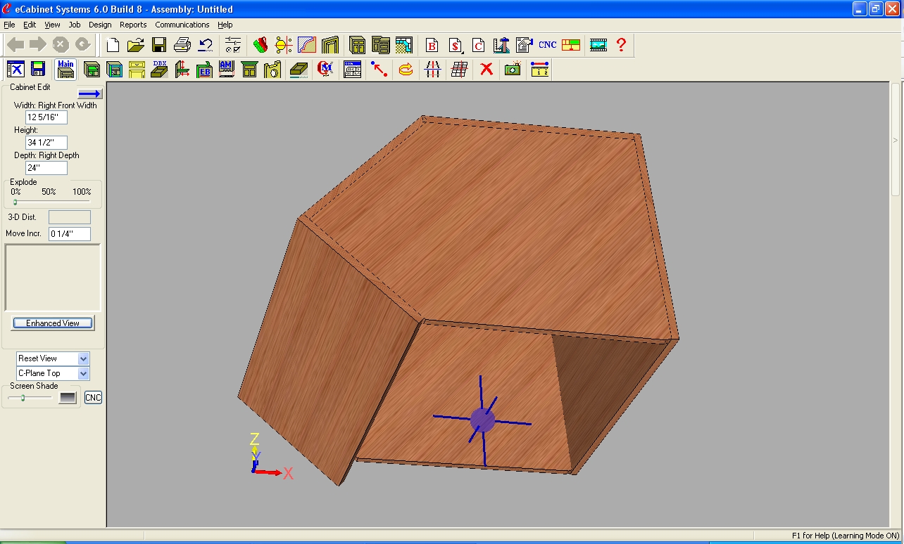 If you don't own a copy of "The Almost Complete Guide to eCabinet Systems Software" I suggest you order one. It will answer a lot of your questions about corner cabs. No better time than the present to "Roll up your sleeves". It is all part of the learning process.