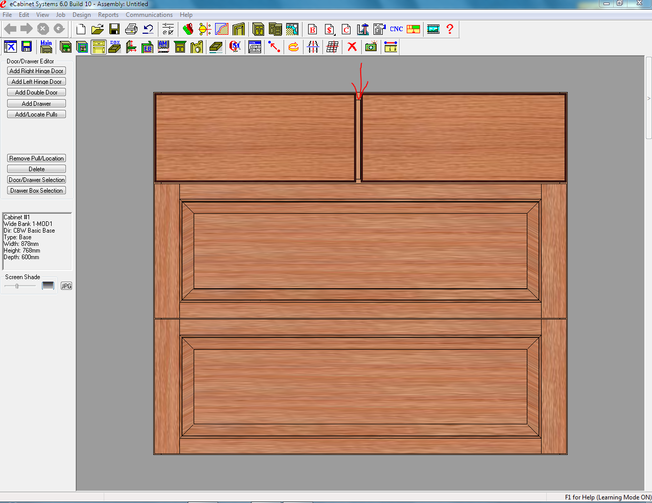 Sometimes when I change the style of drawer front I have to redo all the fronts not only the ones I want to change. One of the top fronts will be narrower than the other one. The second one I place will be the narrower one. In this case 436mm vs 428mm. I'm using 16mm material and have a double upper partition.