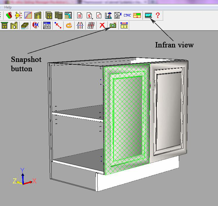 You can use the snapshot button in the cabinet editor and line drawing editor then save the image.
