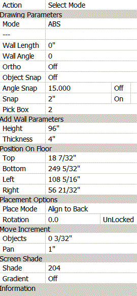 Lower cabinets seem to move and align fine, however the uppers all seem to want to align with the ceiling. I've deleted and the replace some of the single wall cabinets and got them shifted downwards. However the corner cabinets are being problematic. The displayed coordinates are in the attached coord.gif file. The cabinet is now about 1/2 up the wall, and when I try to shift it in the wireframe it refuses to align with the walls or shift upward. If I sett he place mode to free style I can align it to the walls but I can't shift the height...