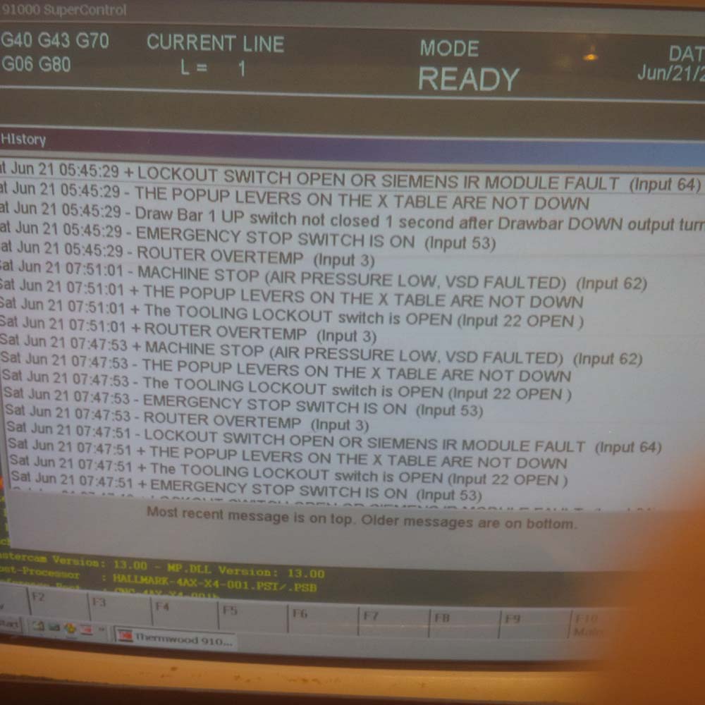 Last week we had a tech out and he along with help from Thermwood determined it was either a temp sensor on the fan (which was replaced 2 years ago) or the temp sensor on the HSD unit. We installed a new fan today and had the same error. As well, we jumped the temp sensor wire and again the same error.