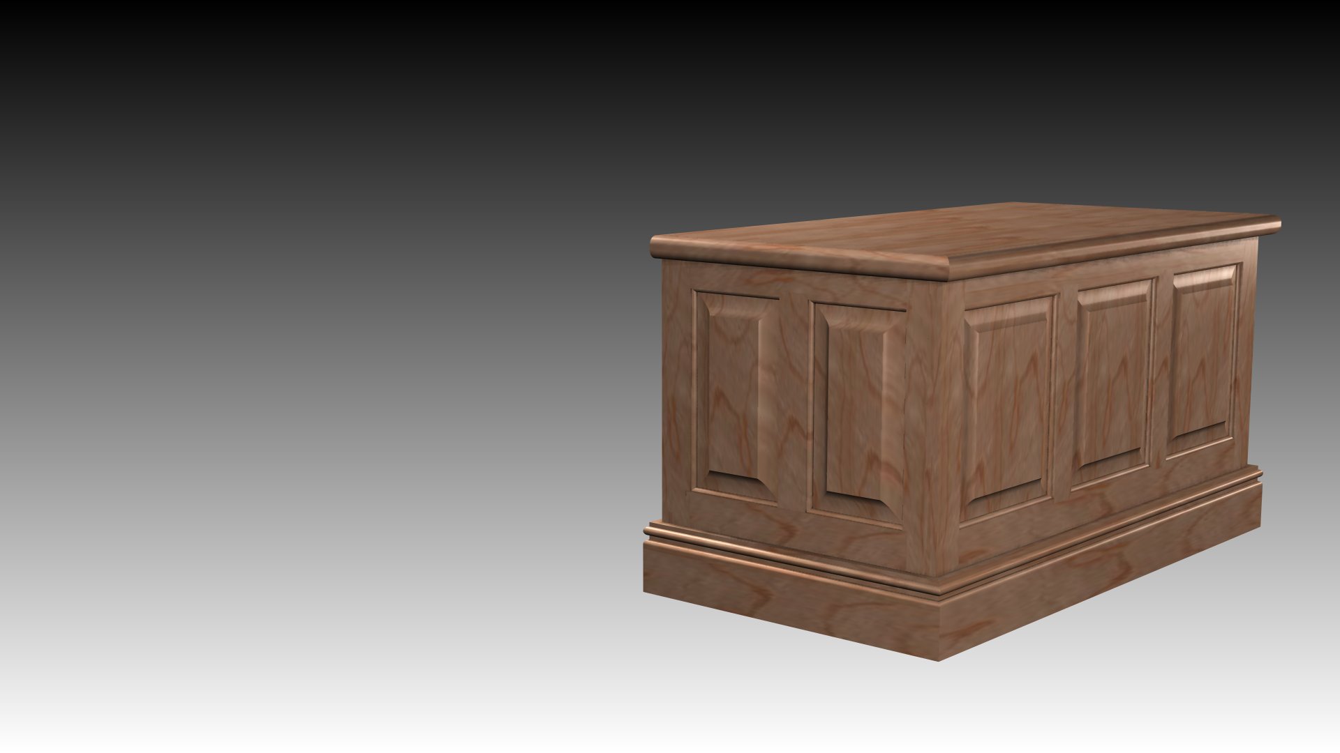 I know that this is an old topic but I thought that some of you could benefit from this.Here is a Pix of a rendering of a Raised panel trunk that my dad designed. I found his plans when cleaning out my garage and thought that it would be a good challenge for me to recreate in ecabinets. Here is a link to the video on how I made the presentation.