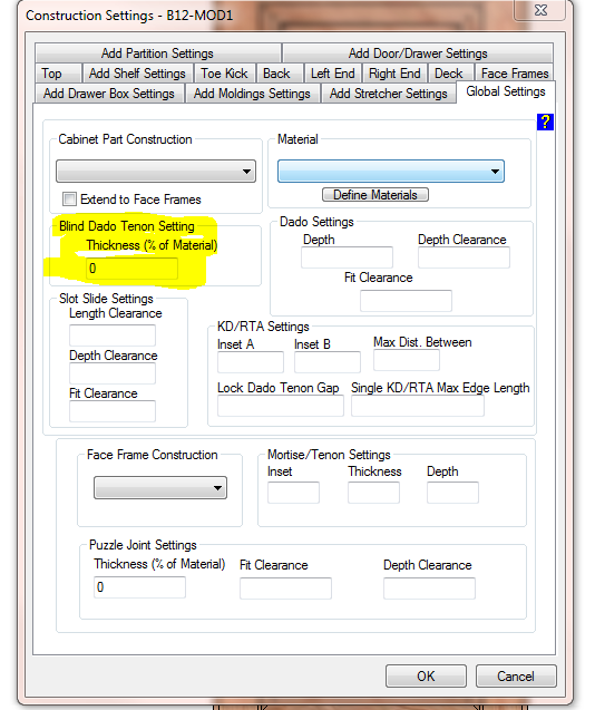 I am trying to assign two different dado depths for my fixed shelves due to different material thicknesses of sides and back, I am using 3/4 on the sides and 1/2 on the back. Is there any way to do this?