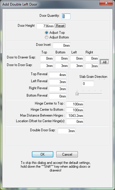 when adding in corner doors (double left or right) i wanting to be able to use a hole pattern to put hinges and hinge plates on the opening door. the program as far as i understand can only support the adjustment of hinge positions on the first door only and the second door has to be done manually. we set our hinges up a little higher than the cabinet hinge so we are adding the holes manually. is there a way that this goal can be acheived or such feature be added to the next update possibly?