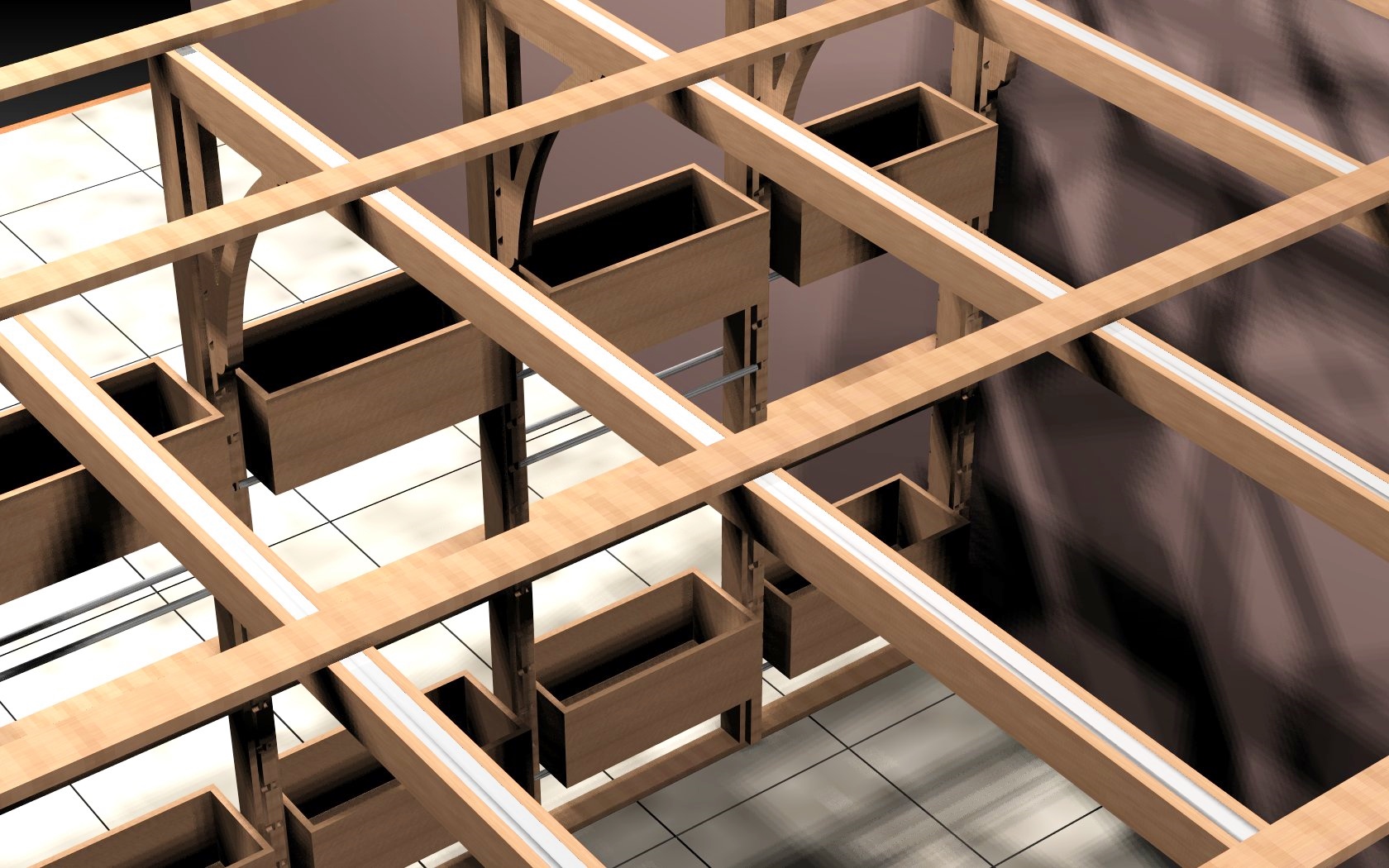 After seeing Kerry's Block Front Chest, got inspired to post some things showing/showoffing eCab's abilities. This pergola was for a Brooklyn, NY terrace. The planter boxes are height adjustable.