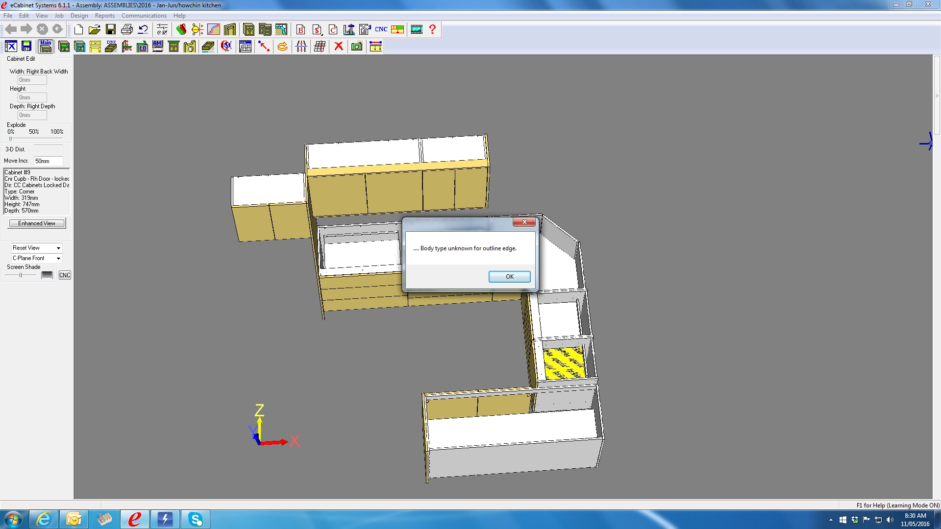 our recent job has currently come up with this error as can see in picture. when I opened the job all I did was change a depth of the corner cabinet from 582mm to 570mm.