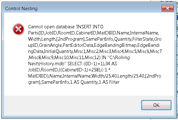 Our machine operator just came in with a problem with nesting his next job. Control Nesting won't let him nest anything, and spits out the following 2 errors: