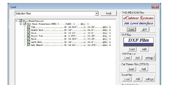To save time and be able to dink around with adding the appropriate sized off-fall, I'll nest the cabinet shell material only, tinker until I'm satisfied, and write the CNC file. Then while those parts are cutting, tinker with the nest on the next material. As long as you don't try to write the CNC file while the machine is cutting (just don't hit that button! Wait until you've exited the timer dialog) things will calculate much faster. All our material is purchased by the unit (40 sheets) so I seldom cut more than one material at a time because I've got to stage everything with a forklift.