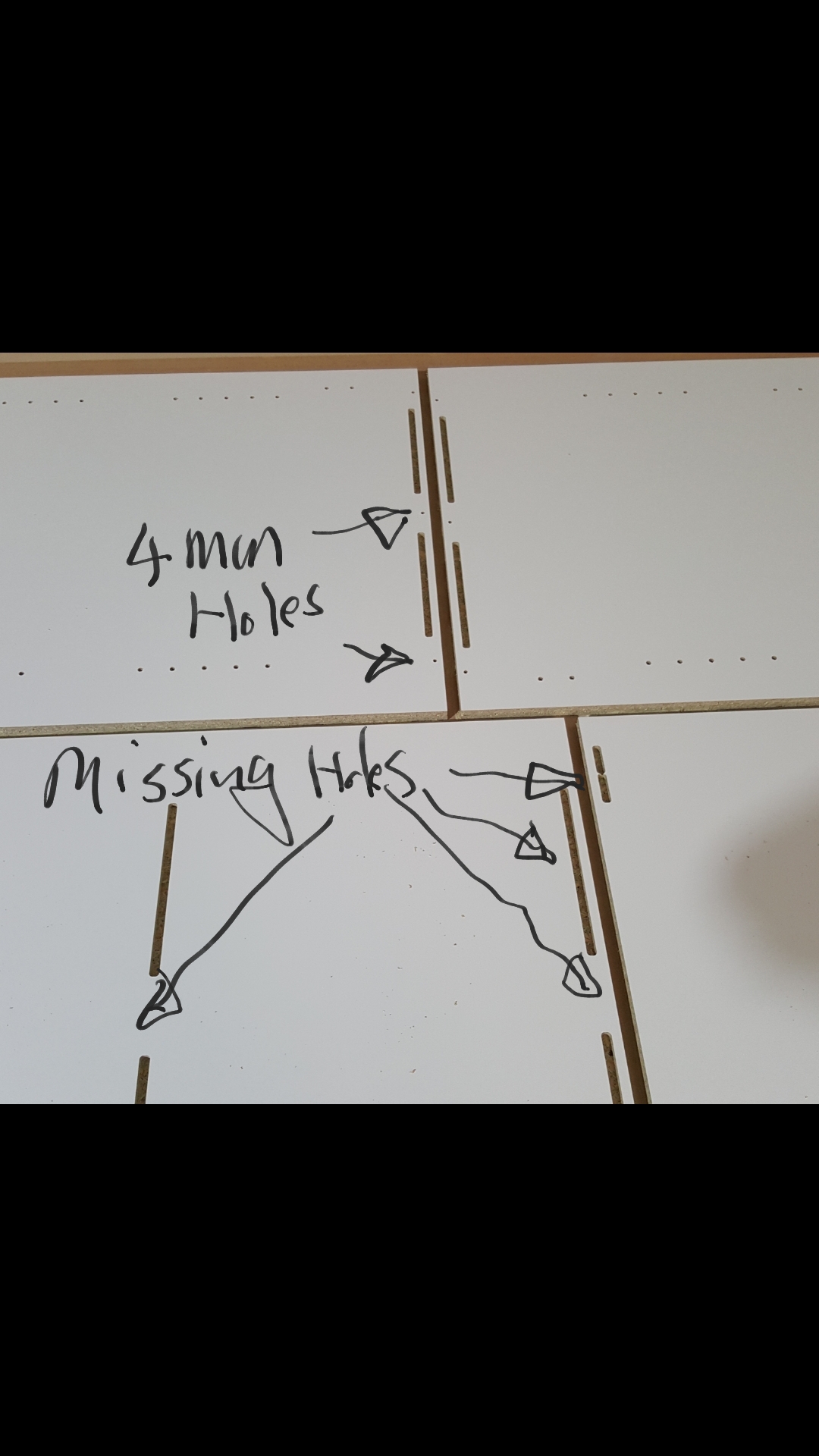 There was also some 4mm handle holes that didn't all get drilled either, but some of those did. it seems very random.