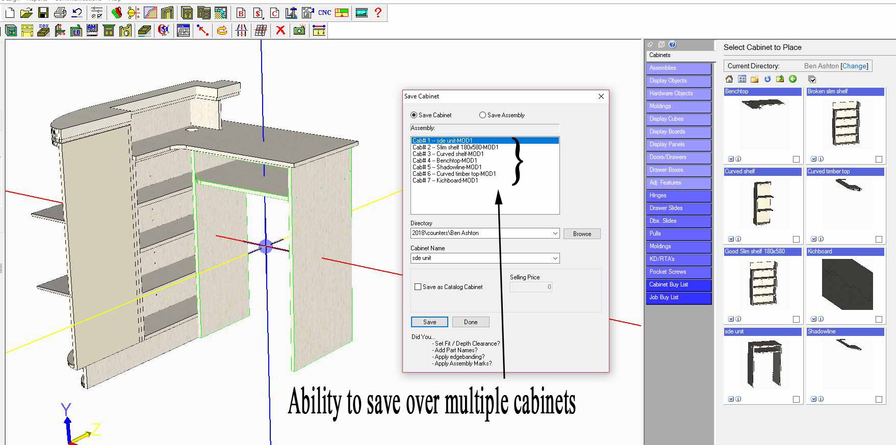 In eCabinet's current state, what you are doing is the only way to save the cabinets individually. I will put in a request to the software engineers to do a "mass save" option when working with assemblies.