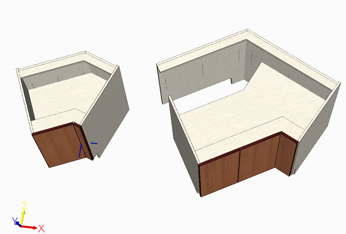 Thanks for the reply on this. It is a real project. I'm trying to see if it would be possible to do the weird shaped cabinets in eCabs, or if I need to do them in Sketchup and import the files into Aspire to cut the parts.