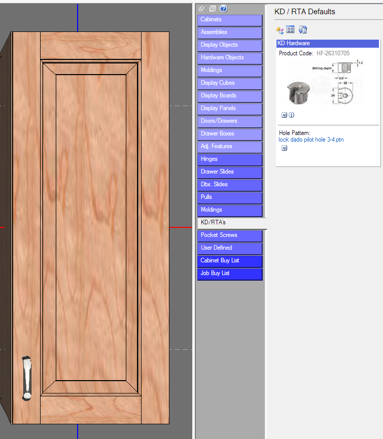 I use a modified kd pattern starting with the hafele model which is default. When I rename and save it the file type is applied by the software as it should be. I have attached a recent project that I did for a local business and used locked dados with my modified pattern. One other thing I will mention. THe 5mm hole which is drilled for the KD pins is not on the center of the work nor does it drill right through to the other side of the material. I have created a pattern for both 5/8 material and 3/4 material and set the depth so that the whole drills through the material but not too deep into the spoil board. I relocated the center of the 5mm hole to center on 5/8 and 3/4 in there respective patterns.I use this pattern when I want to drill pilot holes for conformat screw assembly. You do not have to use full width dados and tenons. you can keep the blind dado setting and adjust the lock dado tenon gap in construction settings to suit your preferences when designing your cabinet.