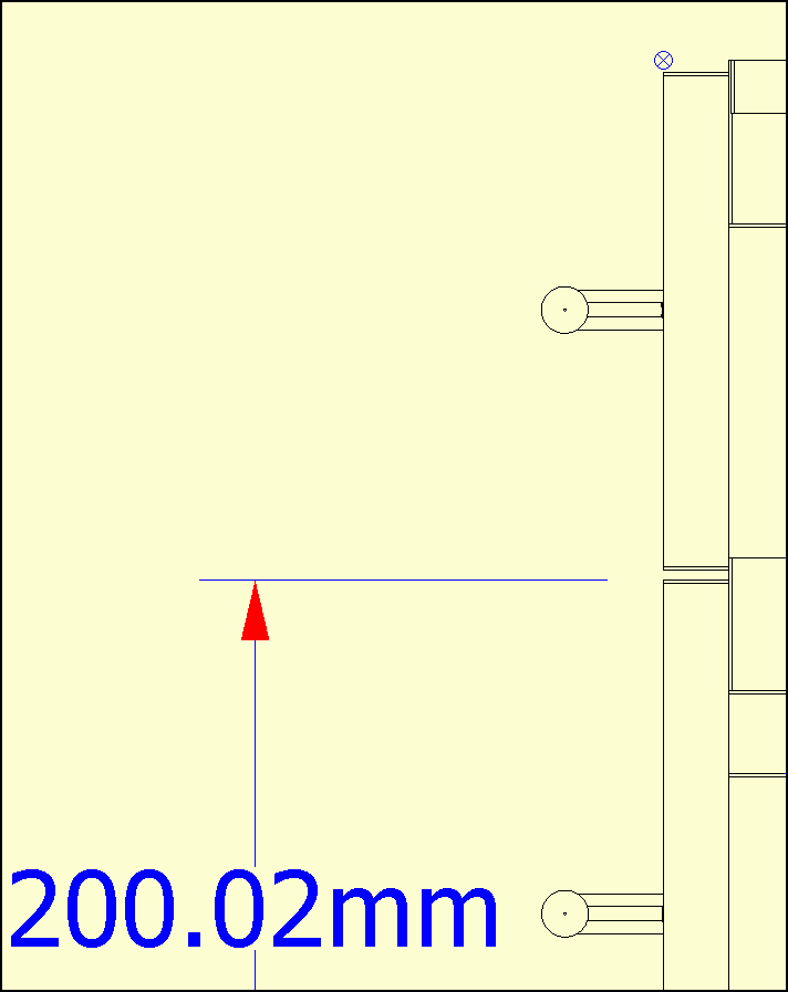 Unless I'm missing something, I can't select the display fronts on this cab in the LDE, so I can't check their dimensions or fit with other parts. You can see that the lower drawer front that was installed as a regular drawer is selectable and I added a dimension to it, but the top drawer front isn't and the marker won't snap to it (closest snap point shown).
