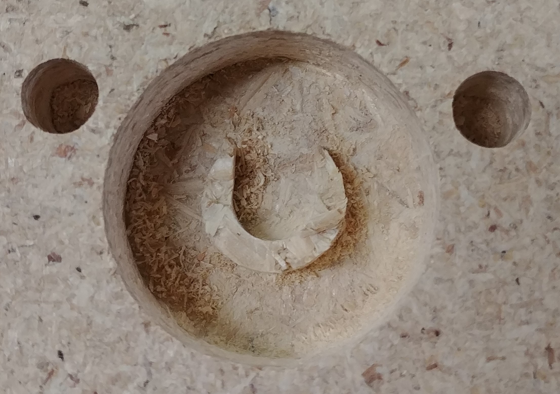 Hinge Cup (see attached picture): Where can I go to learn more about this issue? I have a standard hole pattern, but for whatever reason it doesn't mill out the entire hole. 1-3/8" Diameter Hole, 9/16" deep.