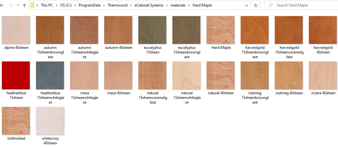 You should then be able to navigate to the C:\ProgramData\Thermwood\eCabinet Systems\materials\Hard Maple folder