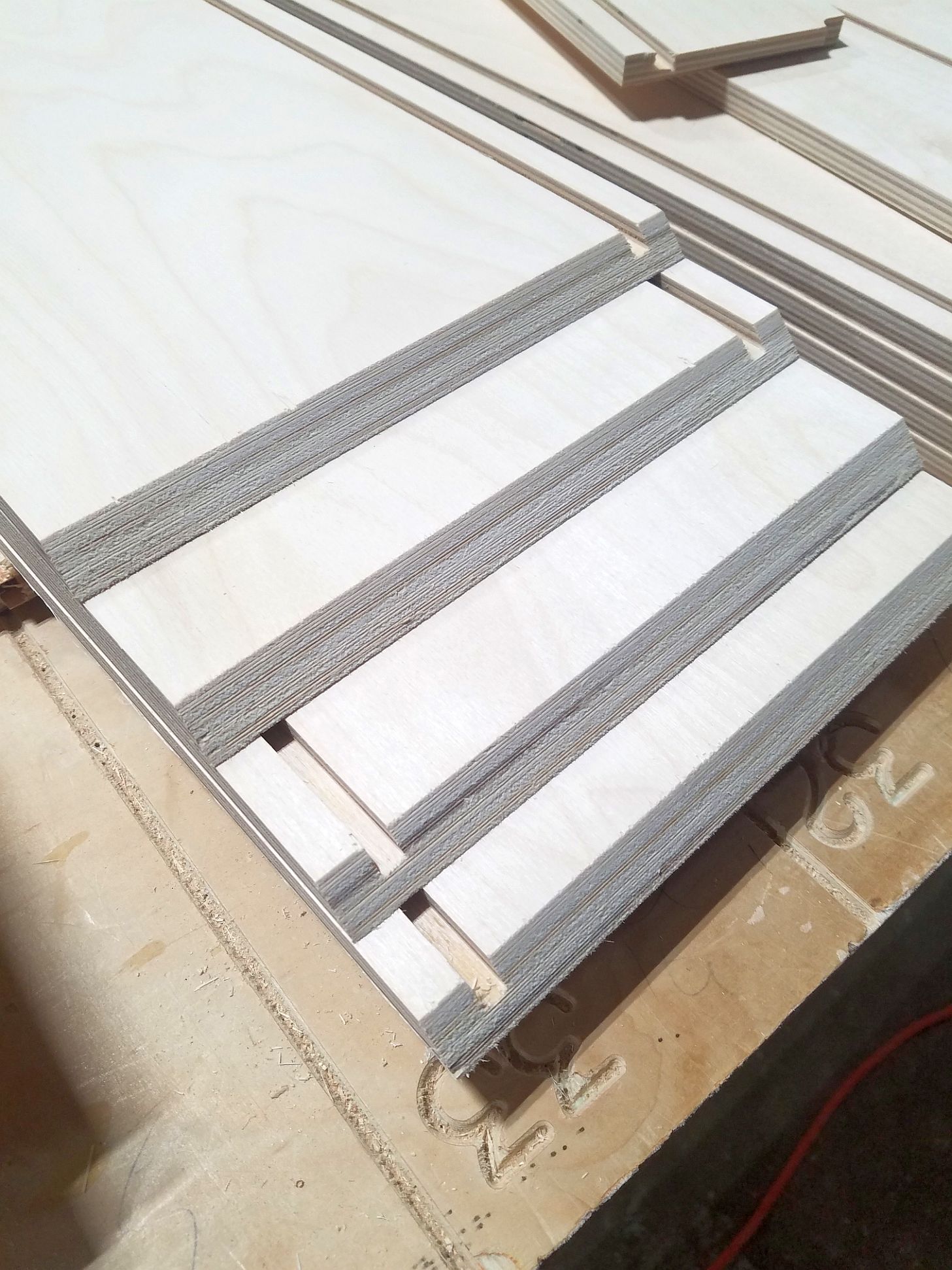 Here is a picture of some 1/2" Baltic Birch Drawer parts for a Blum corner cabinet we cut this morning.