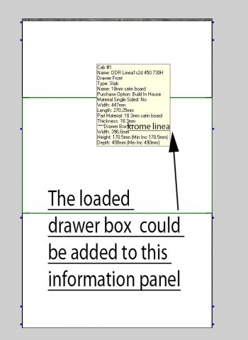 In picture1 when you click on a drawer in the drawer / door editor the windows would reflect the settings and hardware that have been applied to that drawer,
