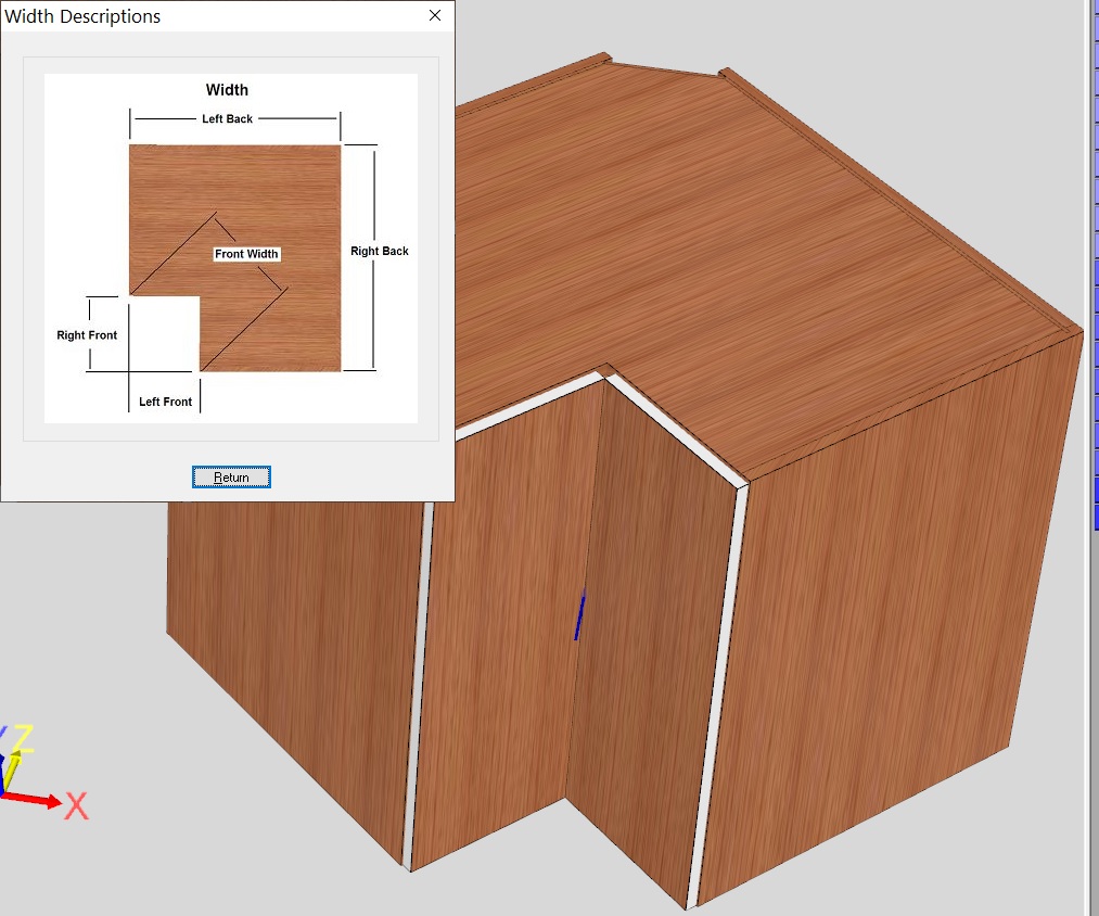 If you take your cabinet into the cabinet editor, open construction settings and go to corner settings. If you click on the question mark for corner settings gap it should be clear how to adjust your corner. Hope this helps.