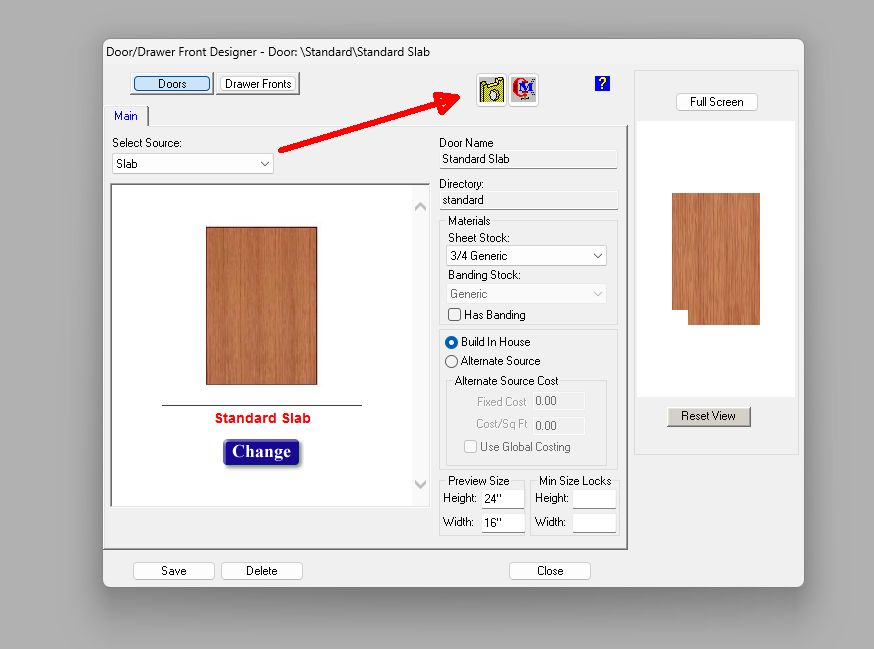 Go to the Cabinet Editor and open the Door Drawer Front Editor from there and select a slab door and you can modify it, add constraints and save it to your library. You must start from the cabinet editor.