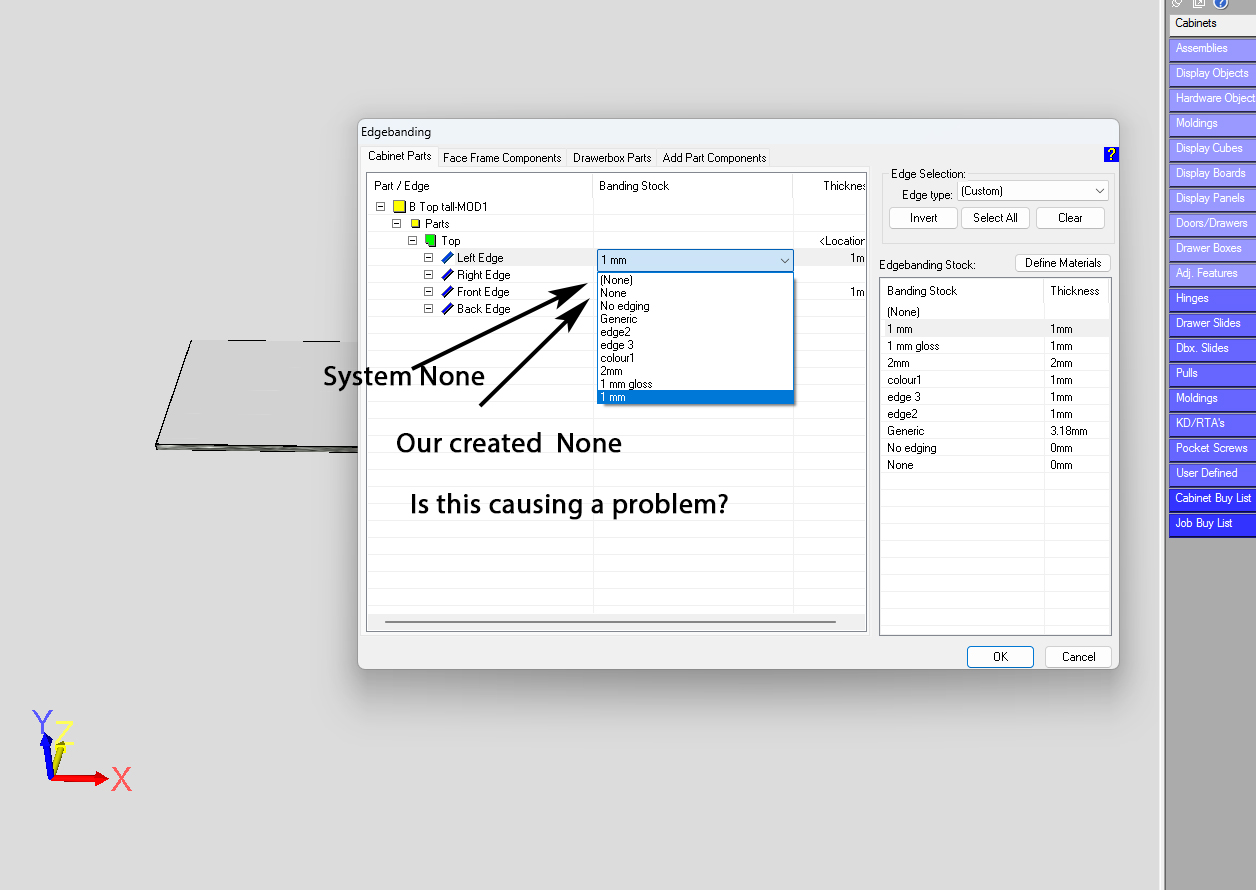 Also in the image below, There is the system None and the created None available as a edge banding selection.