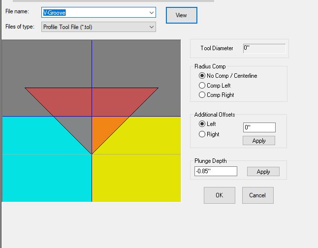 We are using a lot Profil 45 degrees (V-Groove) tool for our Doors and Drawer faces. Usually I add them manuel or in the Door designer with DXF lines (Create Edges). I am move the DXF 1/8 offset from the Part and made them 1/8 longer that the tool is cutting a little bit longer that the tool is passing more (longer) that I have a clean cut on the beginning and on the end of the parts. Also I am going 1/8 in the Wasteboard with the Groove to be sure to have a nice clean cut on the Surface.
