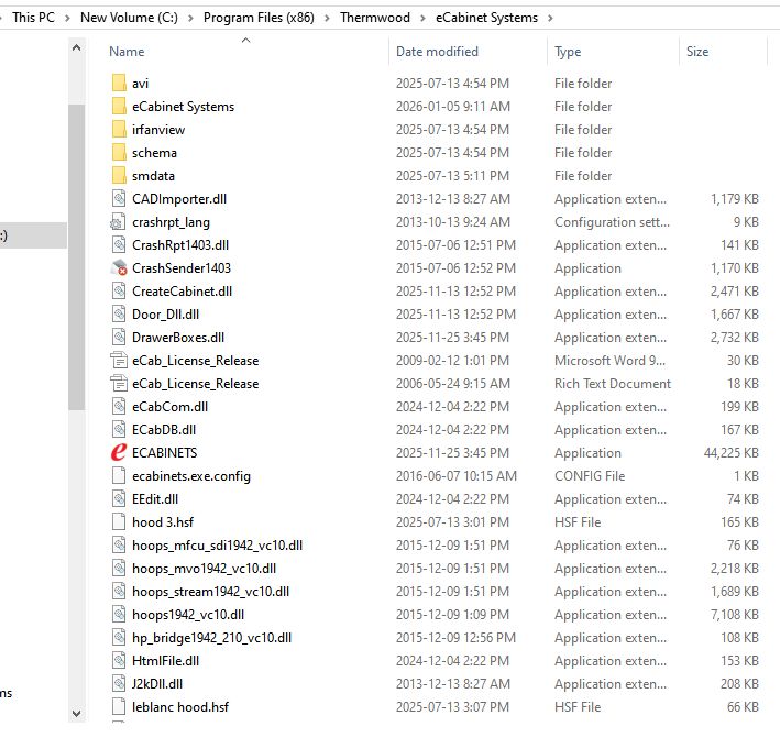 1. Navigate to C:\ProgramData\Thermwood\eCabinet Systems\localstore.