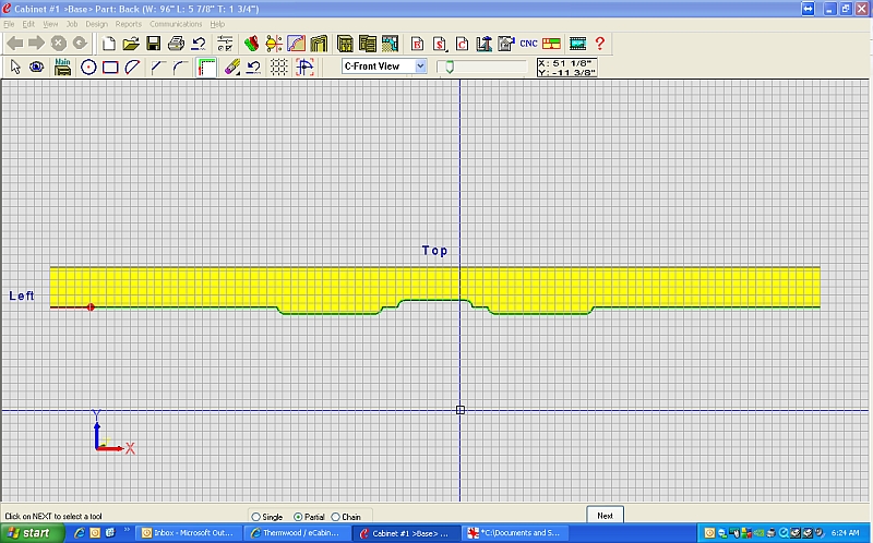Hmmmmm, I cannot seem to get this tool to do a partial or a full chain. I assume you are using the cabinet named {Base} that is made out of a cabinet back? Where on the part do you start your chain or partial chain?