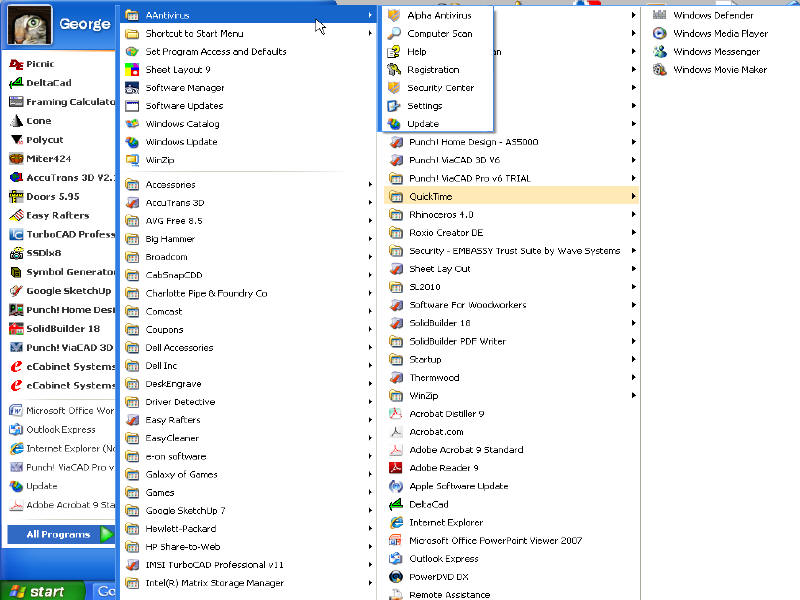 5. Click start, and remove anything that says Alpha Antivirus by right clicking on it and click delete.