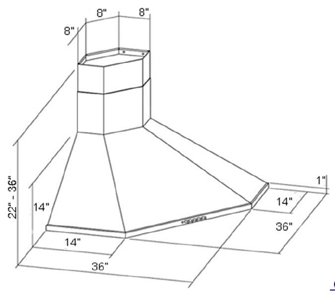 Range Hood Corner 36" x 22" x 36"