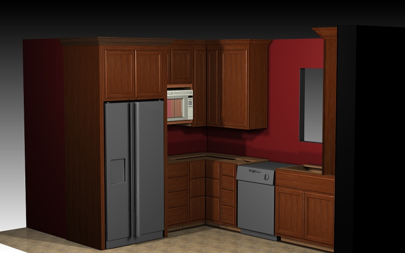 I've attached a kitchen I'm working on and was wondering - the cabinet over the refrigerator has a side panel on each side. The cabinet is inside these side panels. I need to add crown molding around these side panels and the front of the cabinet. I was wondering if someone would be kind enough to show and explain to me how to do this operation.