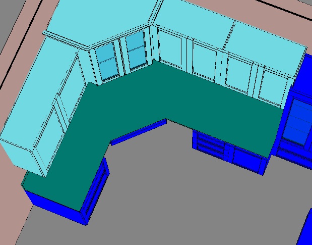 I am attaching a .jpg of a rendering of some office space that I'm designing. For some reason, the countertop does not want to render even though I have deleted it and redefined it...set up a countertop material with just that texture, etc. The green countertop shows up in all of the working views but for some reason doesn't show up in the renderings. Can anyone help? Is there a submenu that I have accidentally clicked off 'display countertop'? I have tried hitting 'restore all' on the right-click menu to no avail. I can still render countertops in other projects, but I'd hate to try to redesign this room to fix this one issue. Any thoughts? I appreciate your time and look forward to hearing your responses. Thank you in advance.
