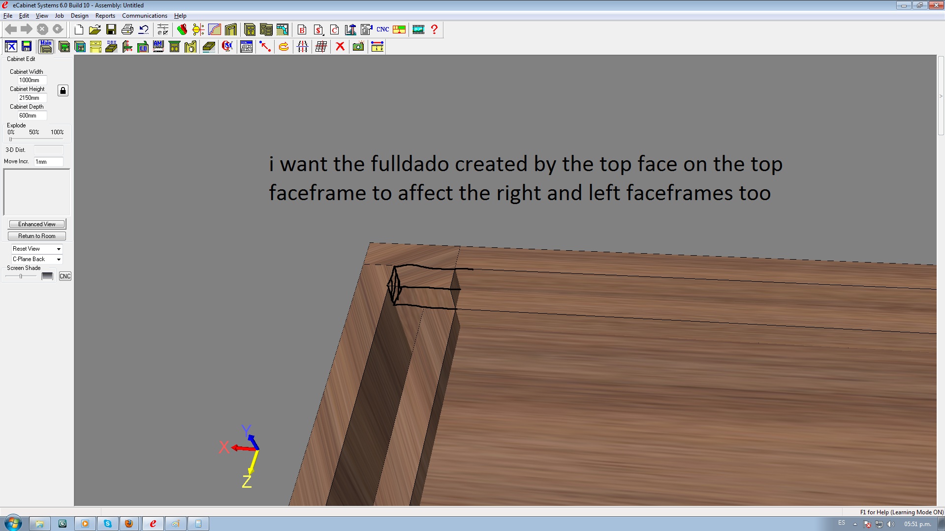 I made the cuts on the faceframes on the part editor, saved the cabinet, etc. Then that same cabinet, i modifed the proportions, all the cuts that i made on the left side were the same, no problem, but on the right side the cuts got all messed up, and i dont know why. If it ocurred on both sides i could guess that you cant modify the proportions and expect the cuts made where OK, but just the right side getting messed up?