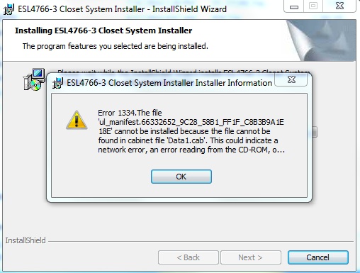 Trying to install the Frameless Closet Library and consistently getting the following error...anyone have a suggestion?