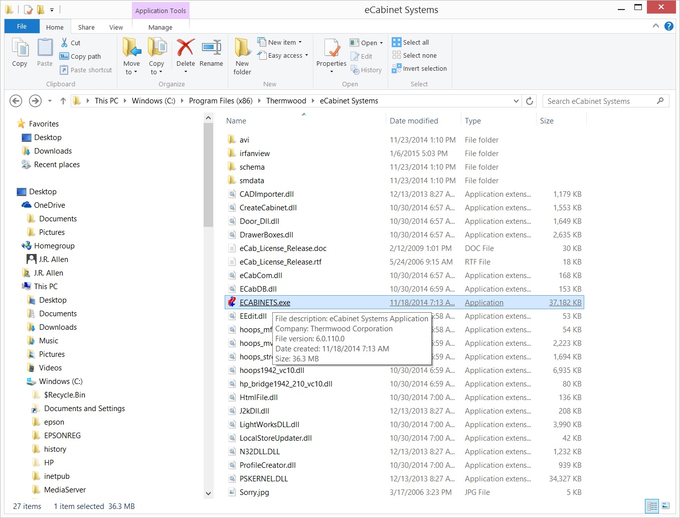 Hardware is located at C:\Users\Public\Documents\Thermwood\eCabinet Systems