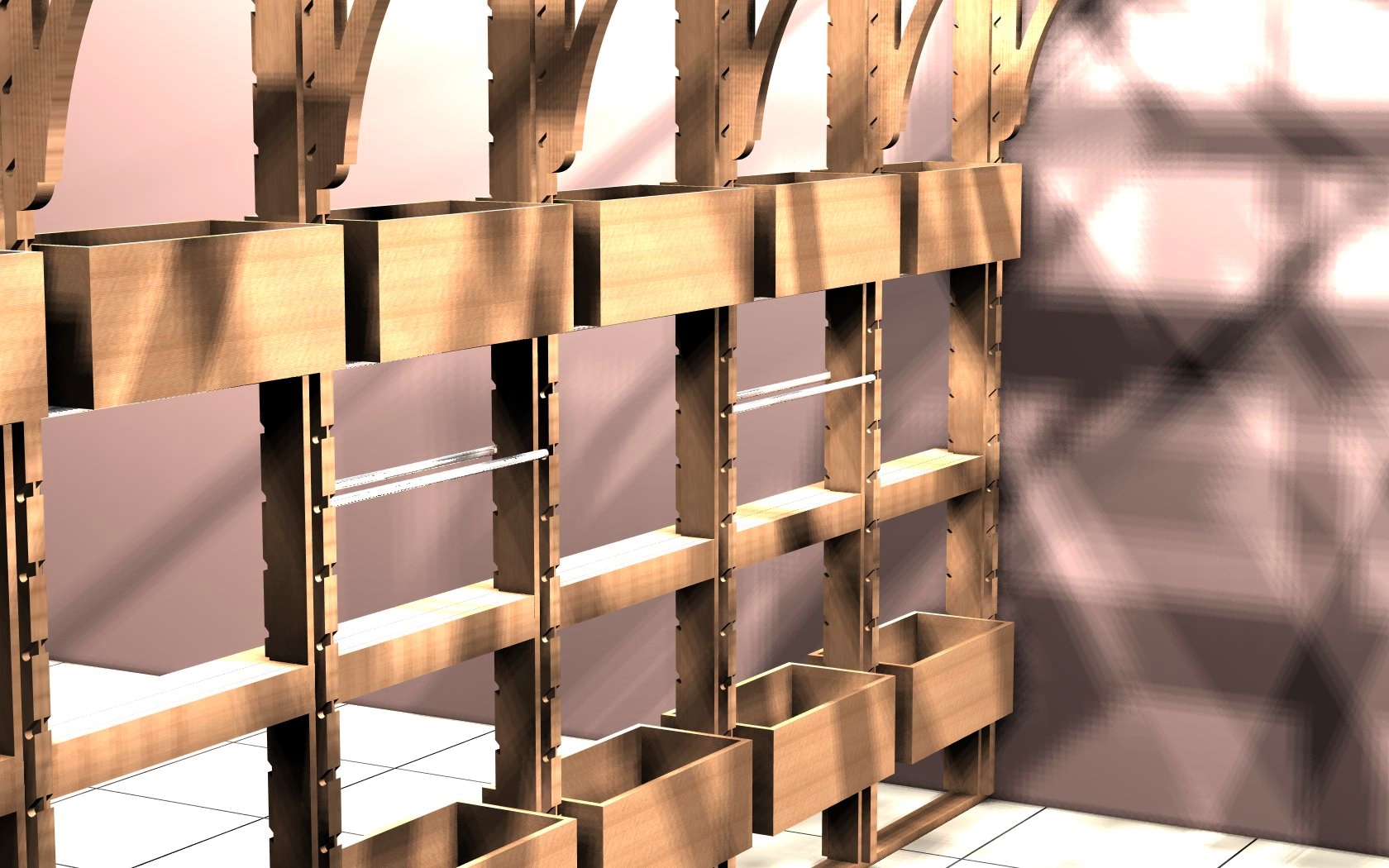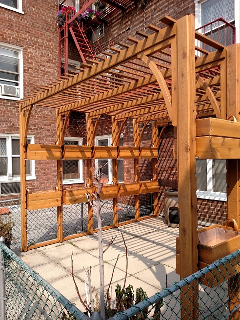 After seeing Kerry's Block Front Chest, got inspired to post some things showing/showoffing eCab's abilities. This pergola was for a Brooklyn, NY terrace. The planter boxes are height adjustable.